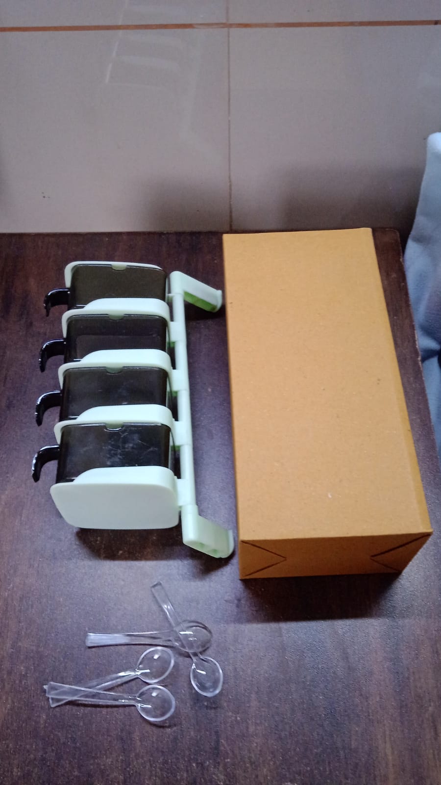Rotating Spice Jars Vertical Rotatable Seasoning Box 5 Section / Tier With 5 Spoon (1 Set)