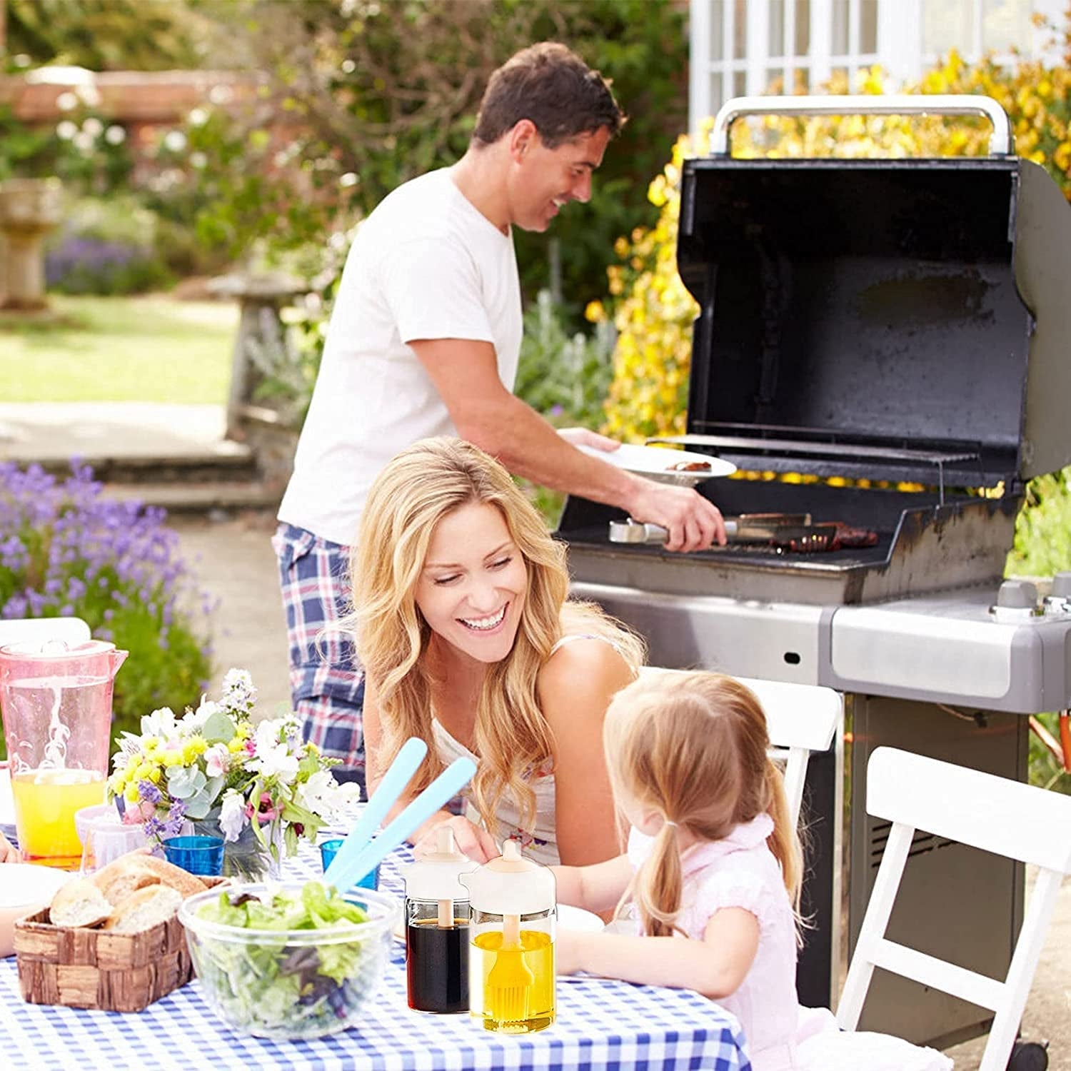 - 【Material Safety & Robustness】: Non-Drip spout leakproof condiment container with silicone brush is made of food-grade ABS and AS, BPA free. The bottle body is made of high temperature resistant high borosilicate glass, resistant to instantaneous extreme temperature difference (-20℃-150℃), and has ultra-high stability, it will not dilute harmful substances, so it can be used for any use such as soy sauce, rapeseed oil liquid, etc.