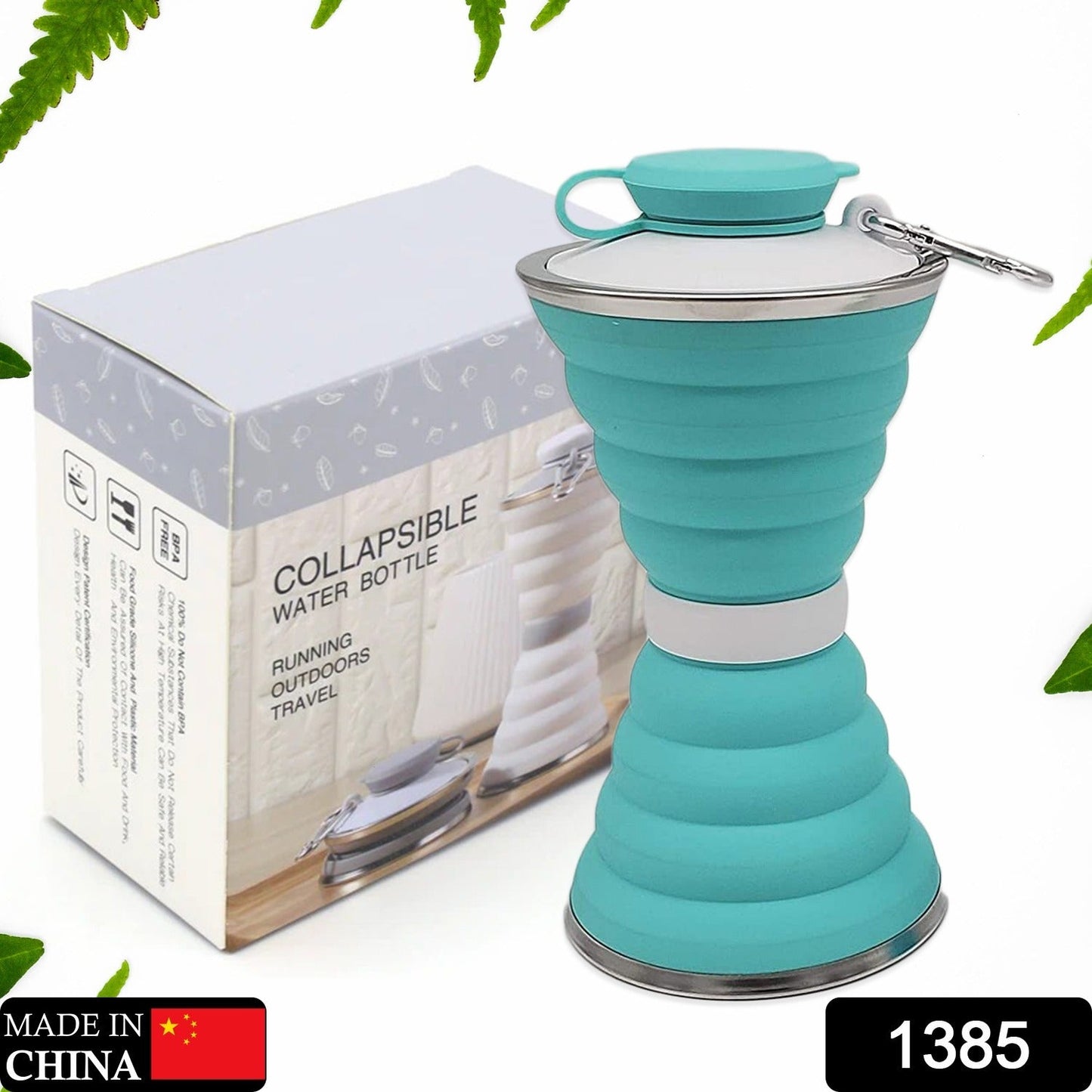 1385 Silicone Traveling Water Bottle BPA Free - Leak Proof Lightweight Collapsible - Small Folding Refillable and Space Saver for Camping Gym Sports Hiking Biking Yoga Outdoor