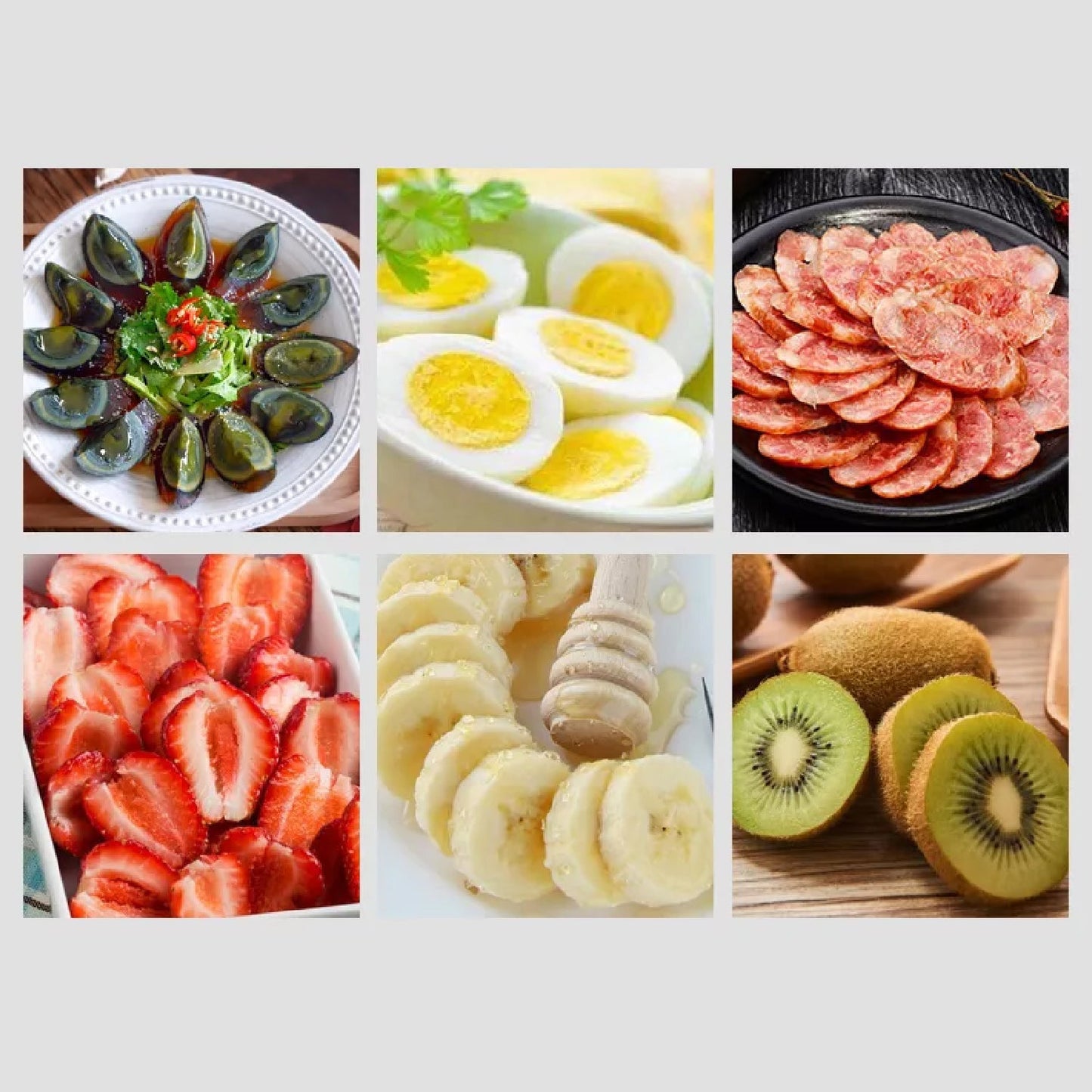 - 3-in-1 Slicer The slicer can easily cut evenly into three various shapes, and rape cutter also suitable for cutting soft foods or fruits, such as strawberry, banana, mushroom, etc.