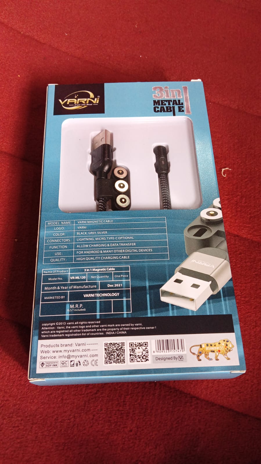 3 in 1 Magnetic USB Charging Cable | USB-c Android and Lightning with Extra Protecting Nylon| Strong Magnetic Cable with Full Rotation Support Fast Charging