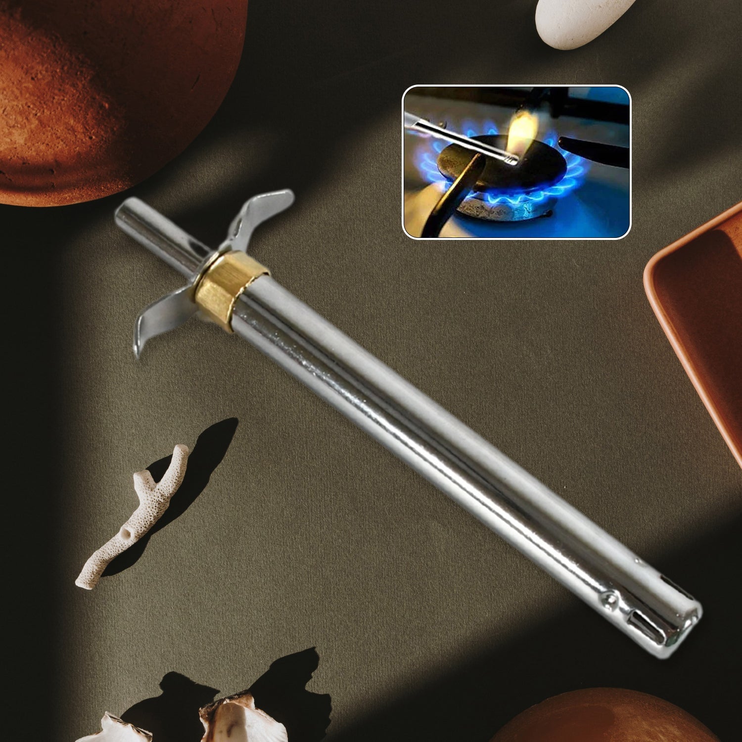 Stainless Steel Electronic Gas Lighter with Box – 17.5 Cm – Good Quality (2 Pcs Set)
