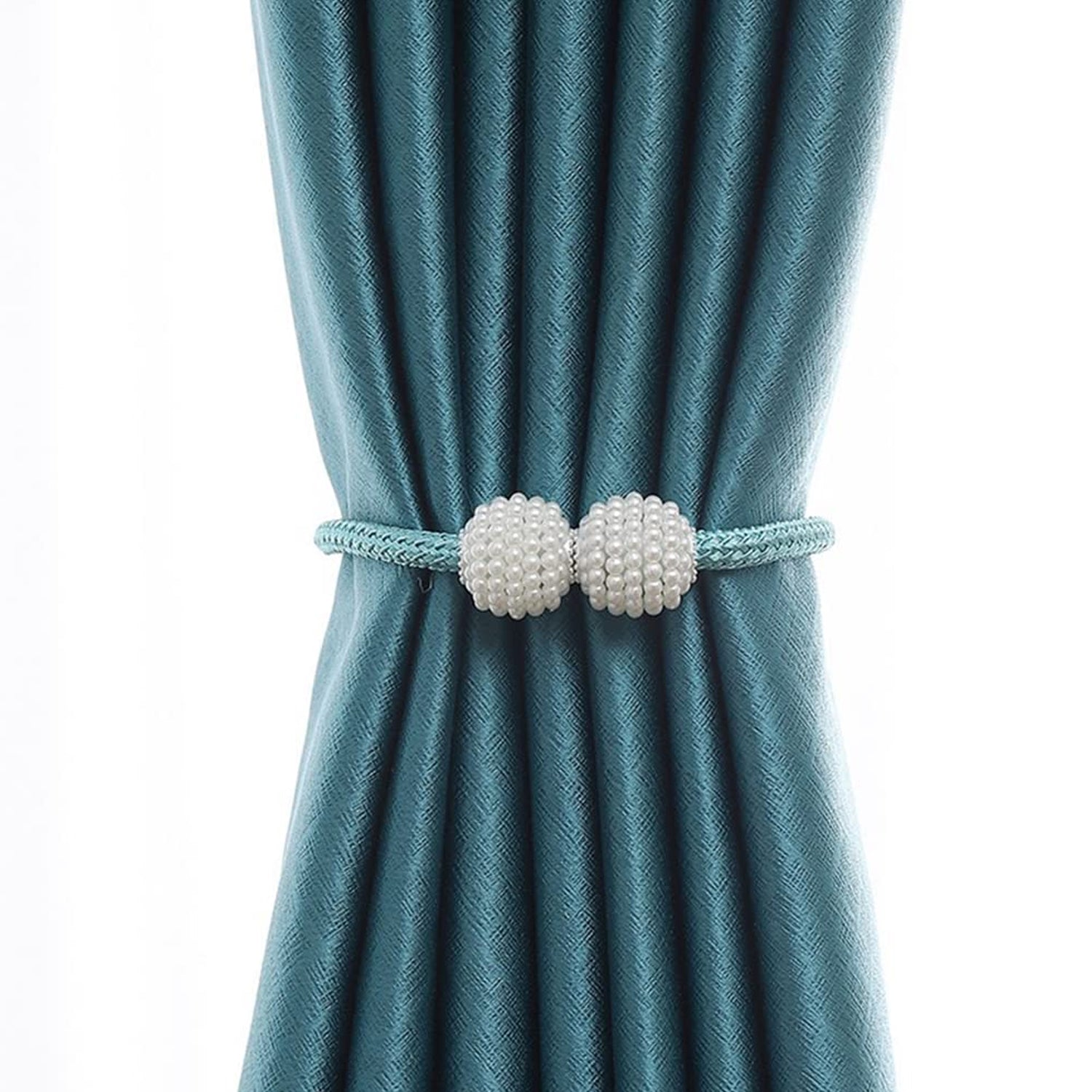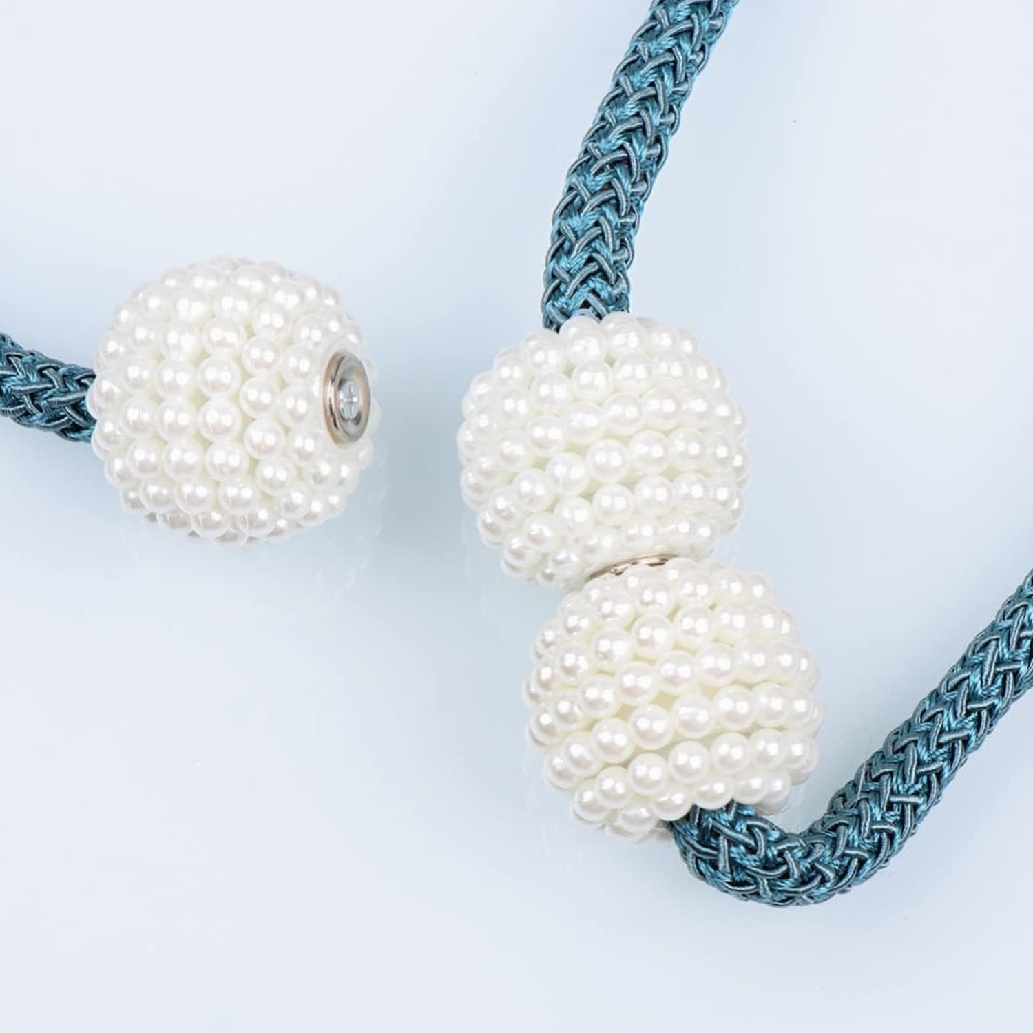 Home Magnetic Curtain Tiebacks, Straps, Buckle, Clips Rope Straps Window Curtain Bracket Decoration, Pearl Decorative Rope Holdback Holder for Window (2 Pc)