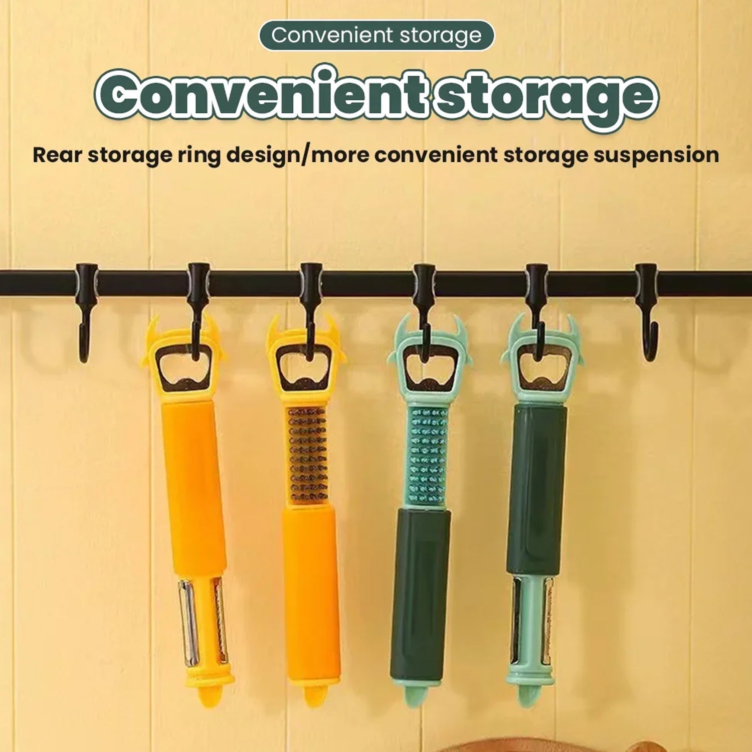 - 7-in-1 design: can opening, fruit peels opening, bottle opening, fruit and vegetable brush, peeling, shredding, and budding. Integrating multiple functions into one, easy to use.
