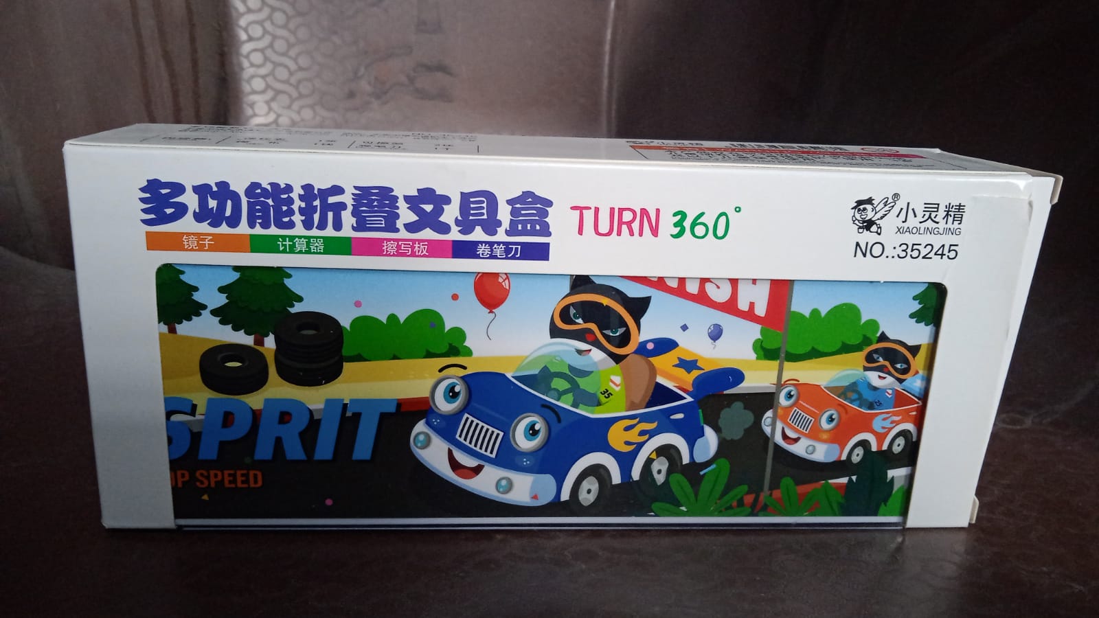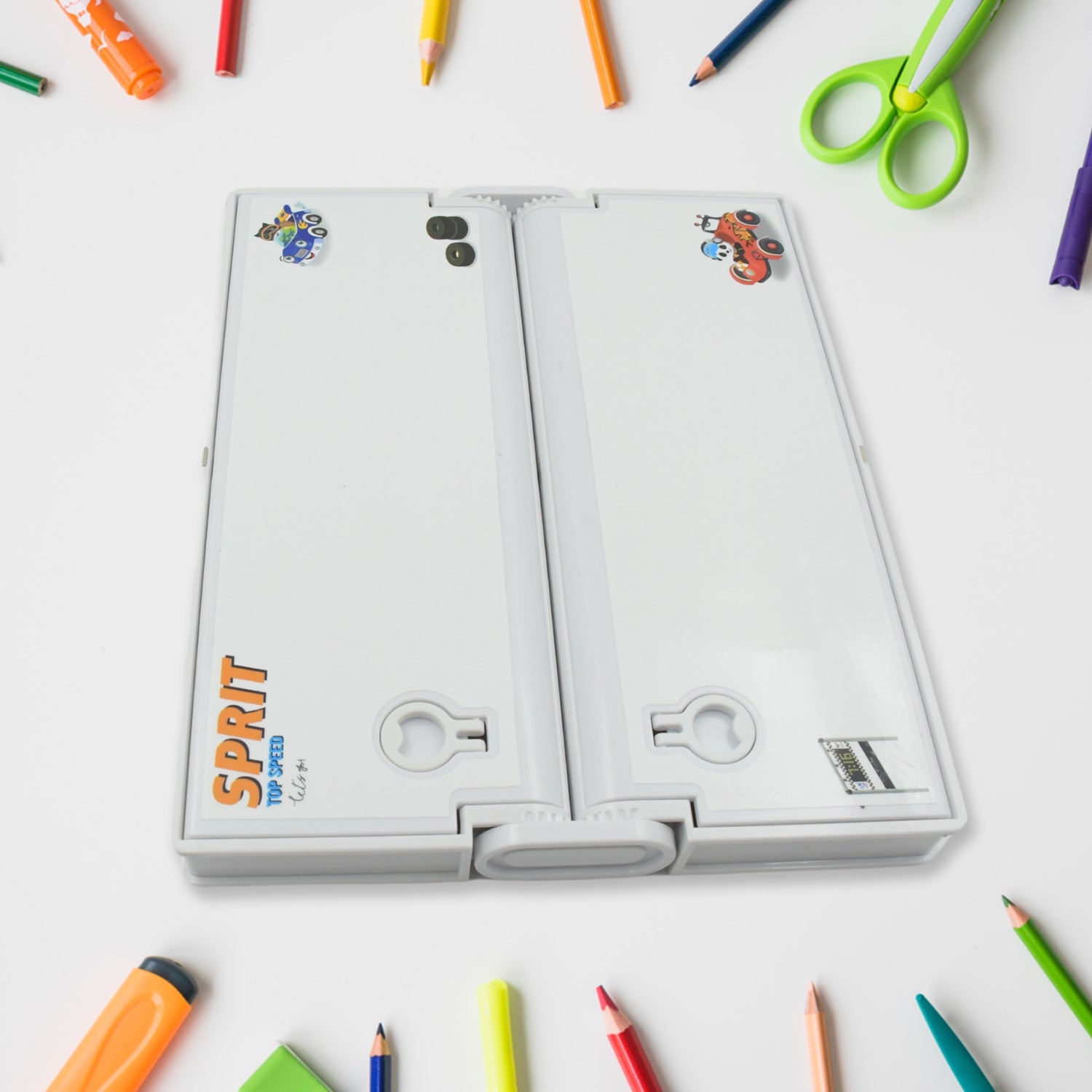 360 degree rotating pencil box with white board marker and duster