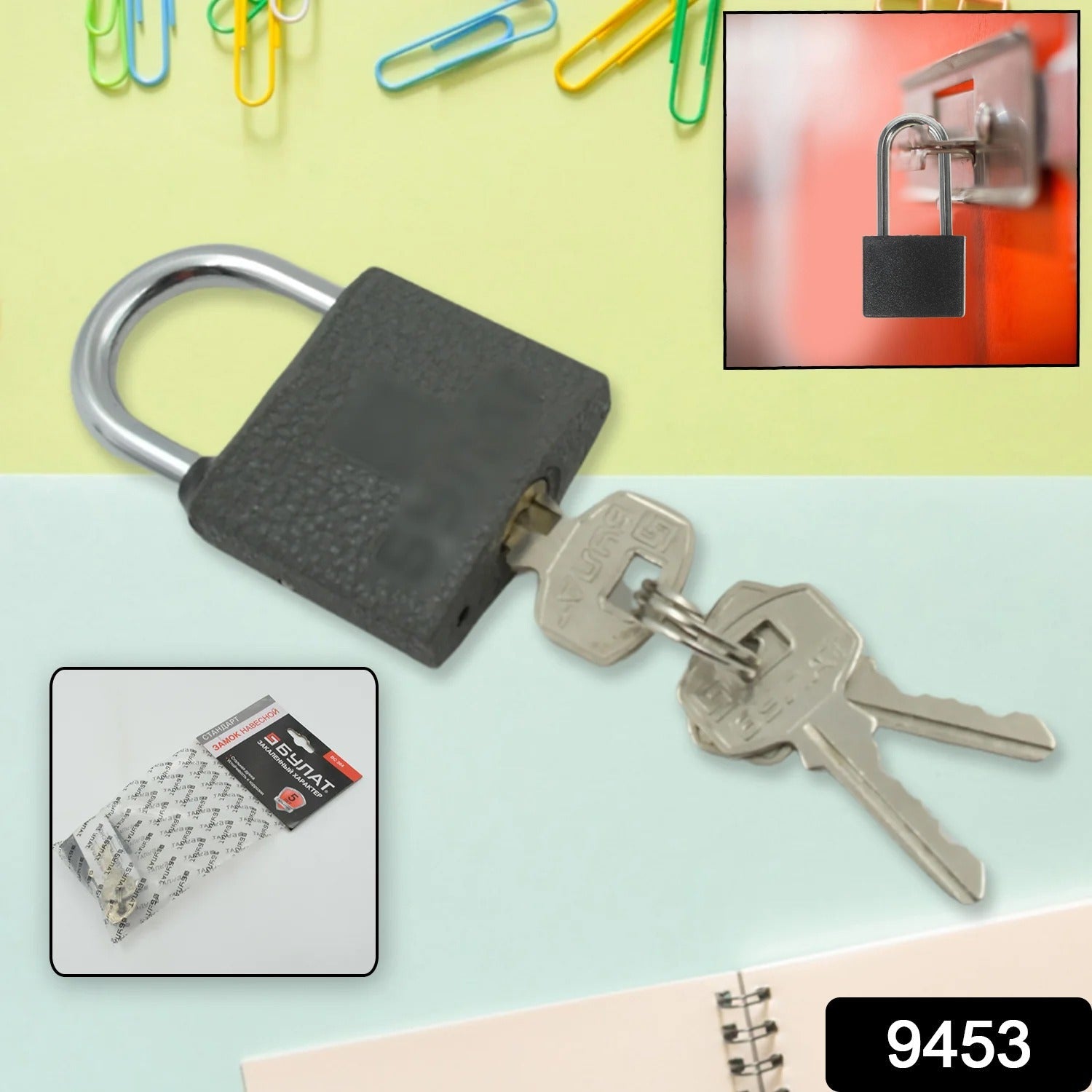 9453 Iron Pad lock, Brass Core and Thickened Spray Black Iron Door Lock With 3 pc Keys for Home Dormitory, Waterproof Antirust Anti-theft Padlocks Outdoor Gate Shed Locks Warehouse Small Iron Door Drawer Lock ( 37 mm )