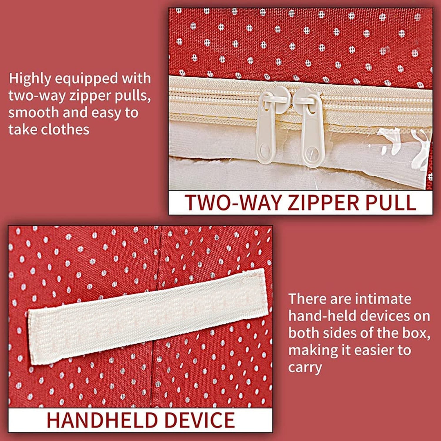 - MULTIPLE FEATURES MAKES IT EASY TO USE - Front and top zippers to keep or remove clothes. Front and Side View Window to view content inside without opening the box. Label Holder to mark what's kept inside. Side handles to lift the living box. Completely foldable when not in use. Even the smallest of details have been kept in mind to make these storage boxes very easy for you to use.