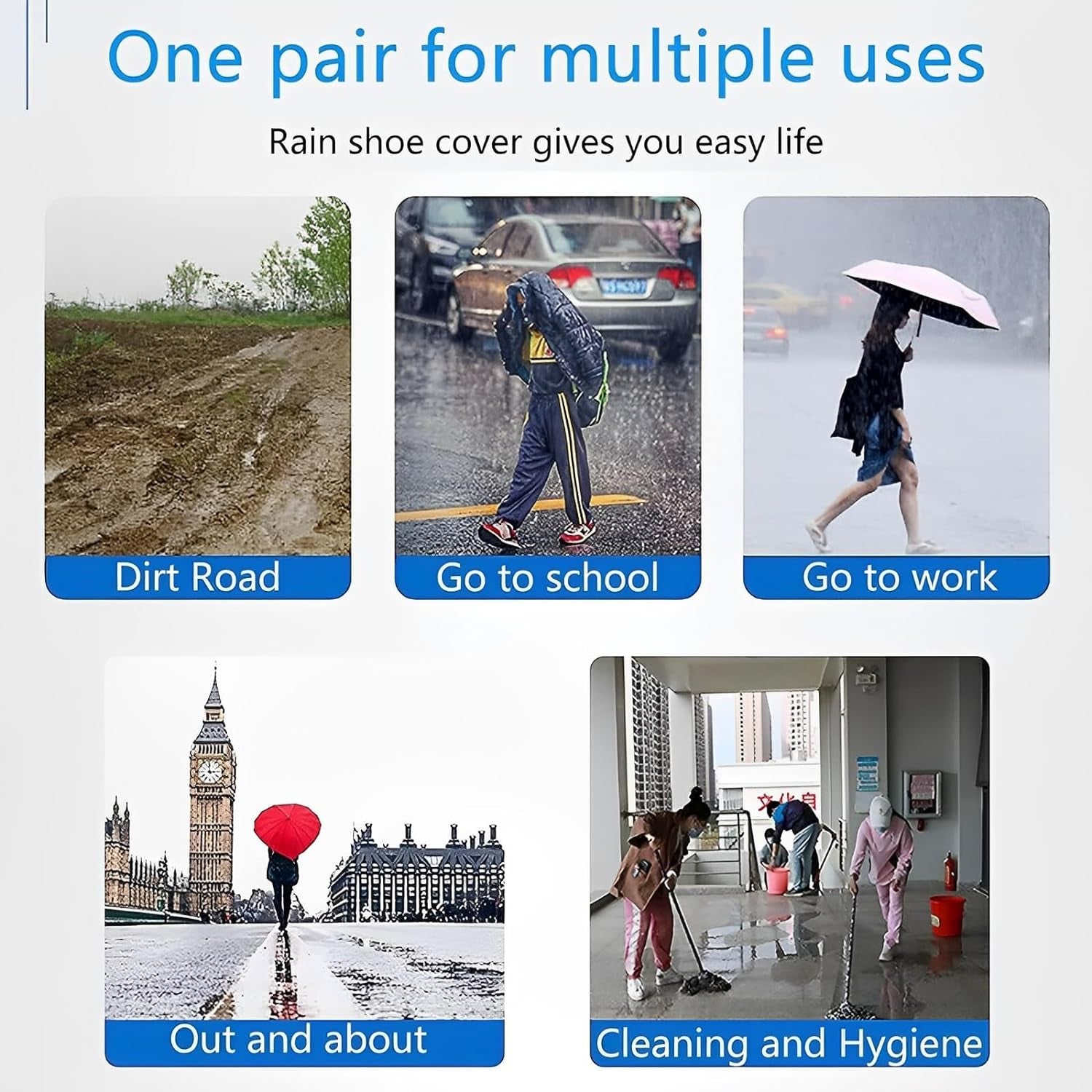 - It can not only protect your shoes from getting wet in rainy days, but also prevent the ground from getting dirty in household, office, hotel, hospital, and research institutions. Reusable and nonslip, brings considerable convenience to people when they go outside and suffer from heavy rainfalls. Unisex, suitable for men and women.
